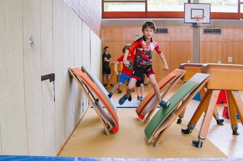 Beim Sport, Spiel und Spass können sich die Kinder austoben mit Freunden und neue Kontakte knüpfen. In der Turnhalle Räbli